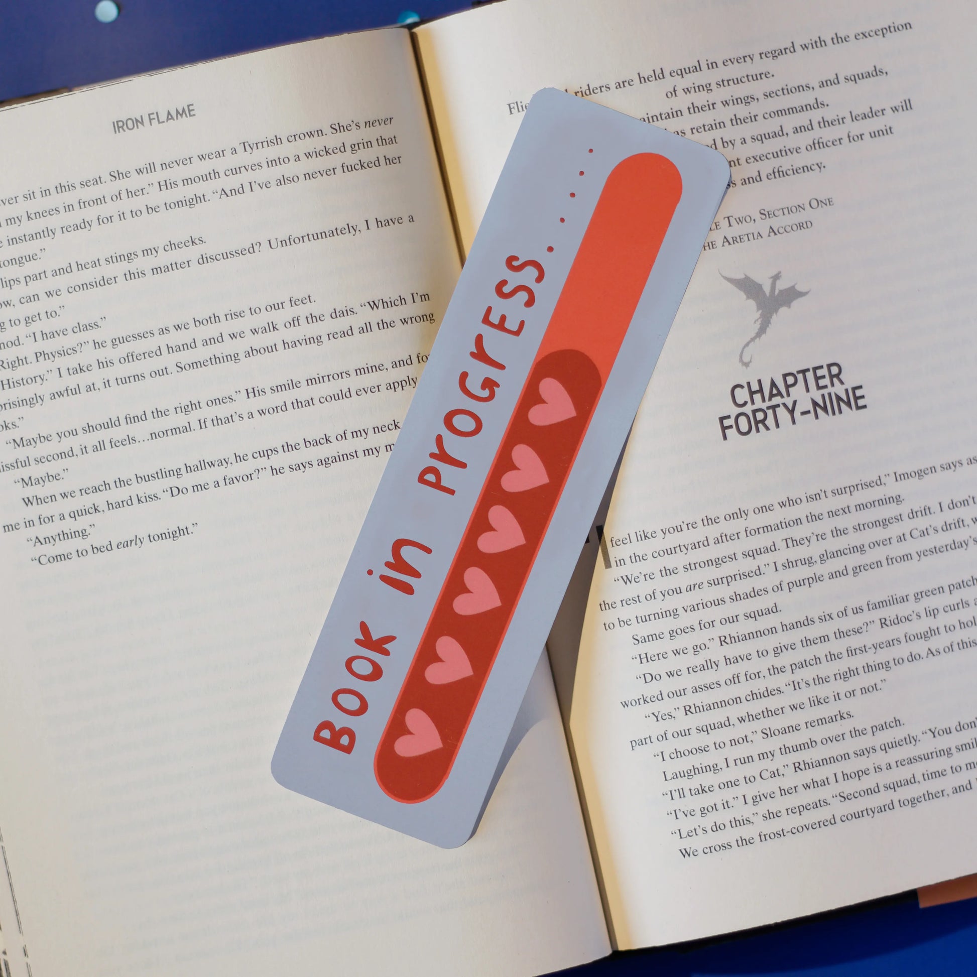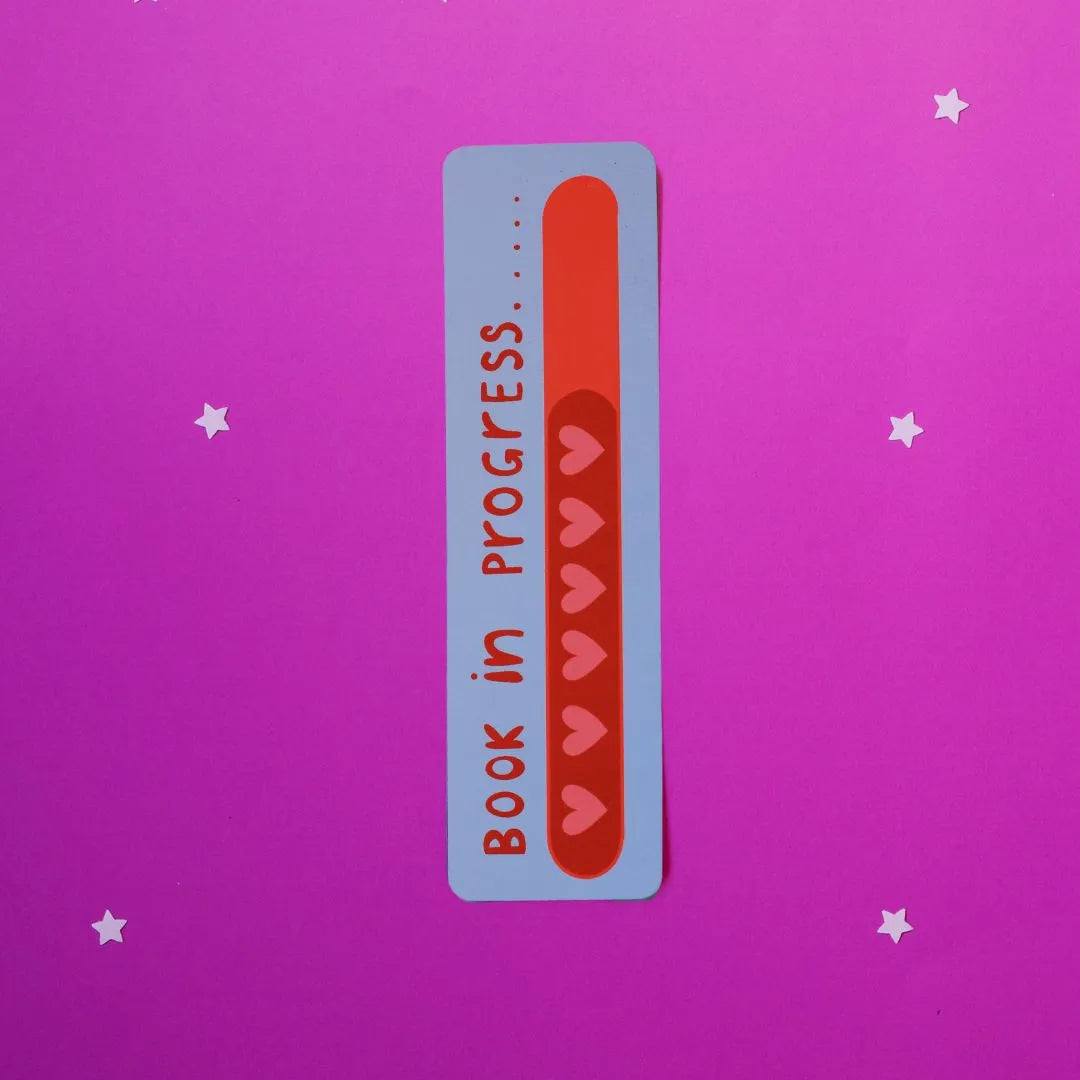 Our 'Book in Progress' bookmark features a loading bar filled with hearts. Because every page is a part of the journey!