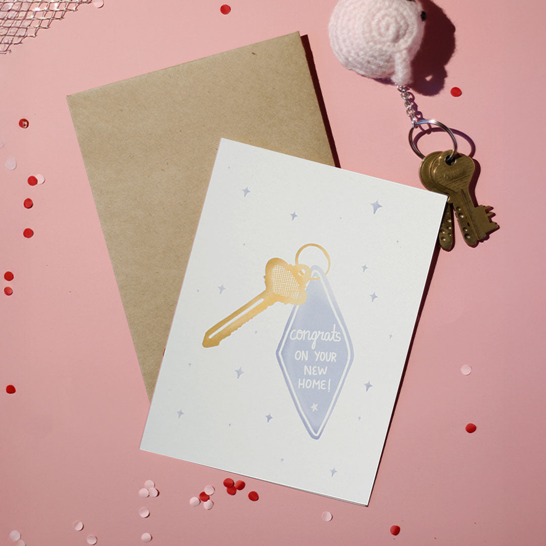 New keys open new doors! Celebrate a fresh chapter with our ‘Congrats on Your New Home Key Set’ greeting card, as warm as a new home hug.
