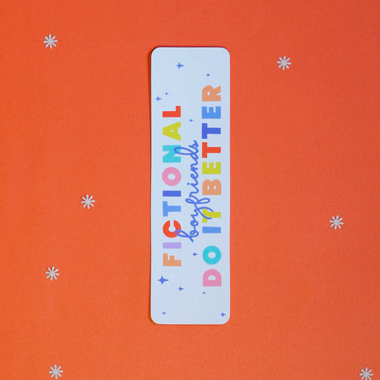Our 'Fictional Boyfriends Do It Better' colorful bookmark is made for anyone who loves getting lost in swoon-worthy stories and imaginary romances.