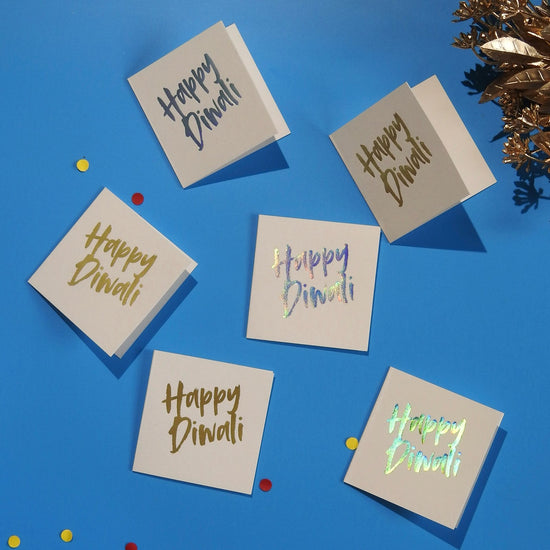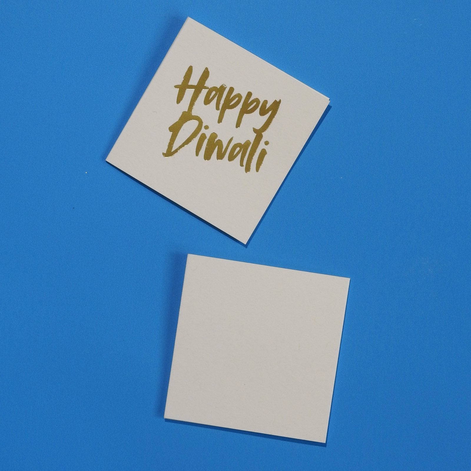 Our set of ten 'Happy Diwali Gift Cards' includes five in gold foil and five in silver foil, all printed on premium recycled paper. Each 2 x 2 inch card opens up so you can add your own sweet message, making them feel more special than a simple tag.