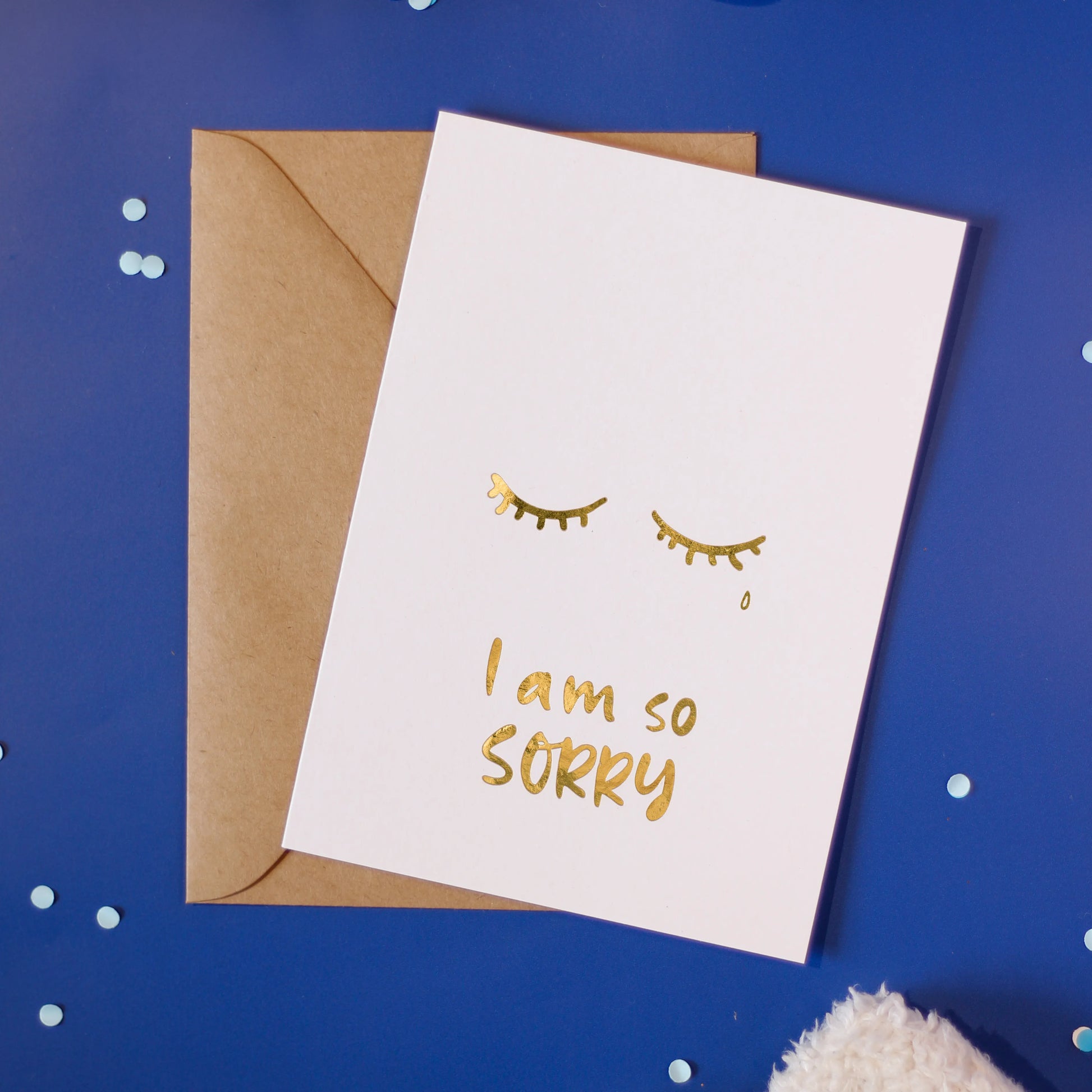 For when you messed up, or life just did. Our 'I Am So Sorry Tears' greeting card says "I'm sorry" the way you meant to. It's heartfelt, meaningful, and just a little shiny (because even apologies deserve gold foil).