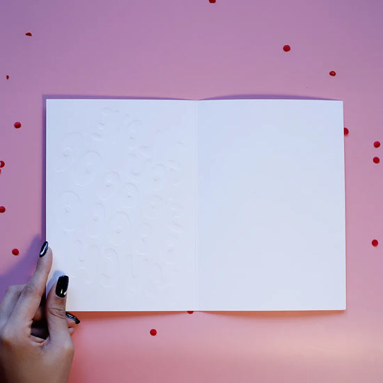 Blank inside for your love letter, doodles, or spontaneous declarations of love.