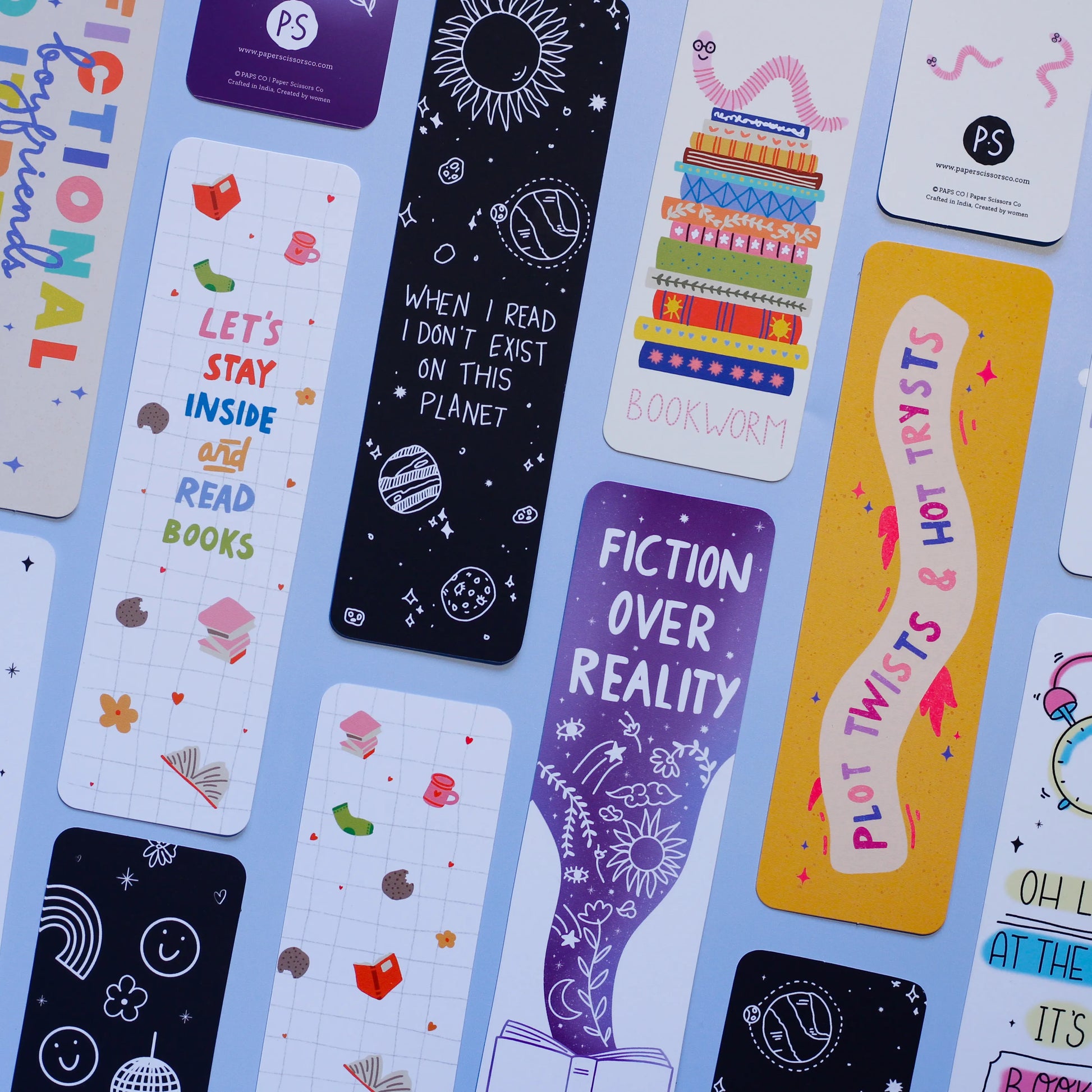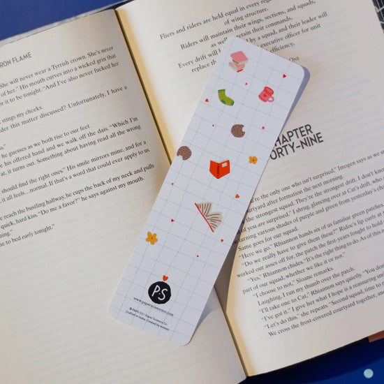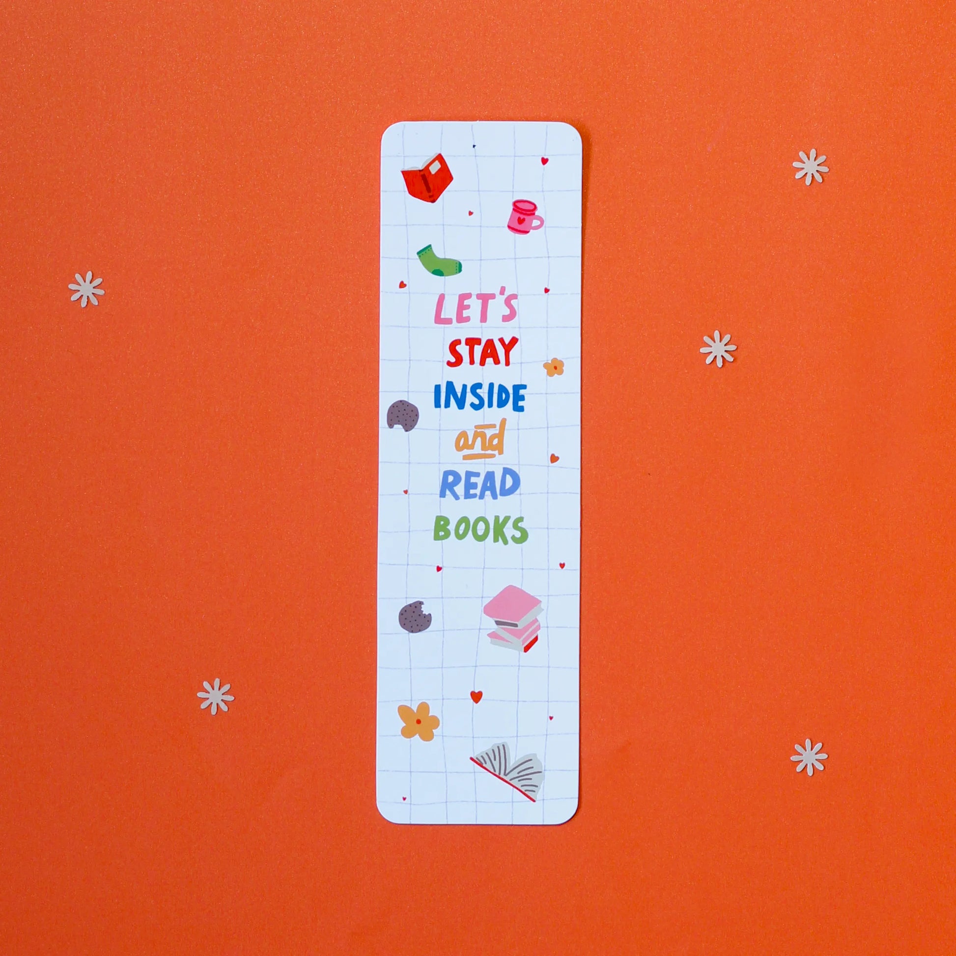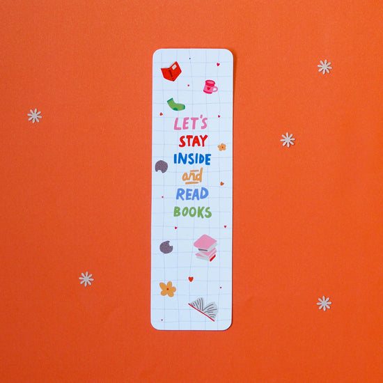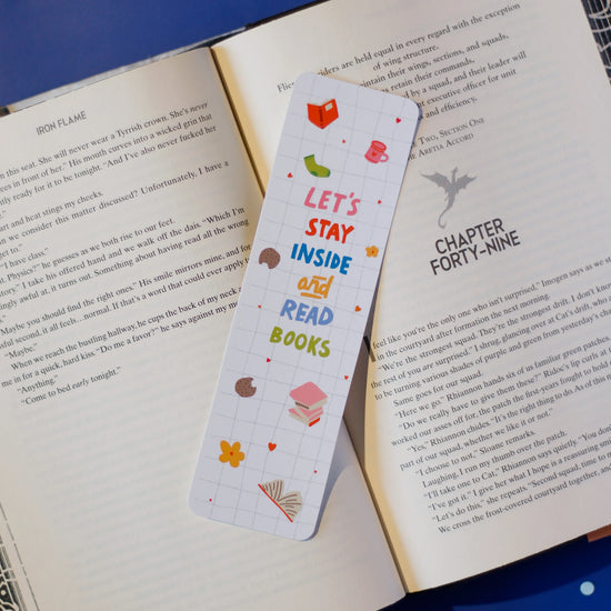 Our 'Let's Stay Inside' cozy bookmark, adorned with charming illustrations, invites you to snuggle up with your favorite book and forget the world outside.