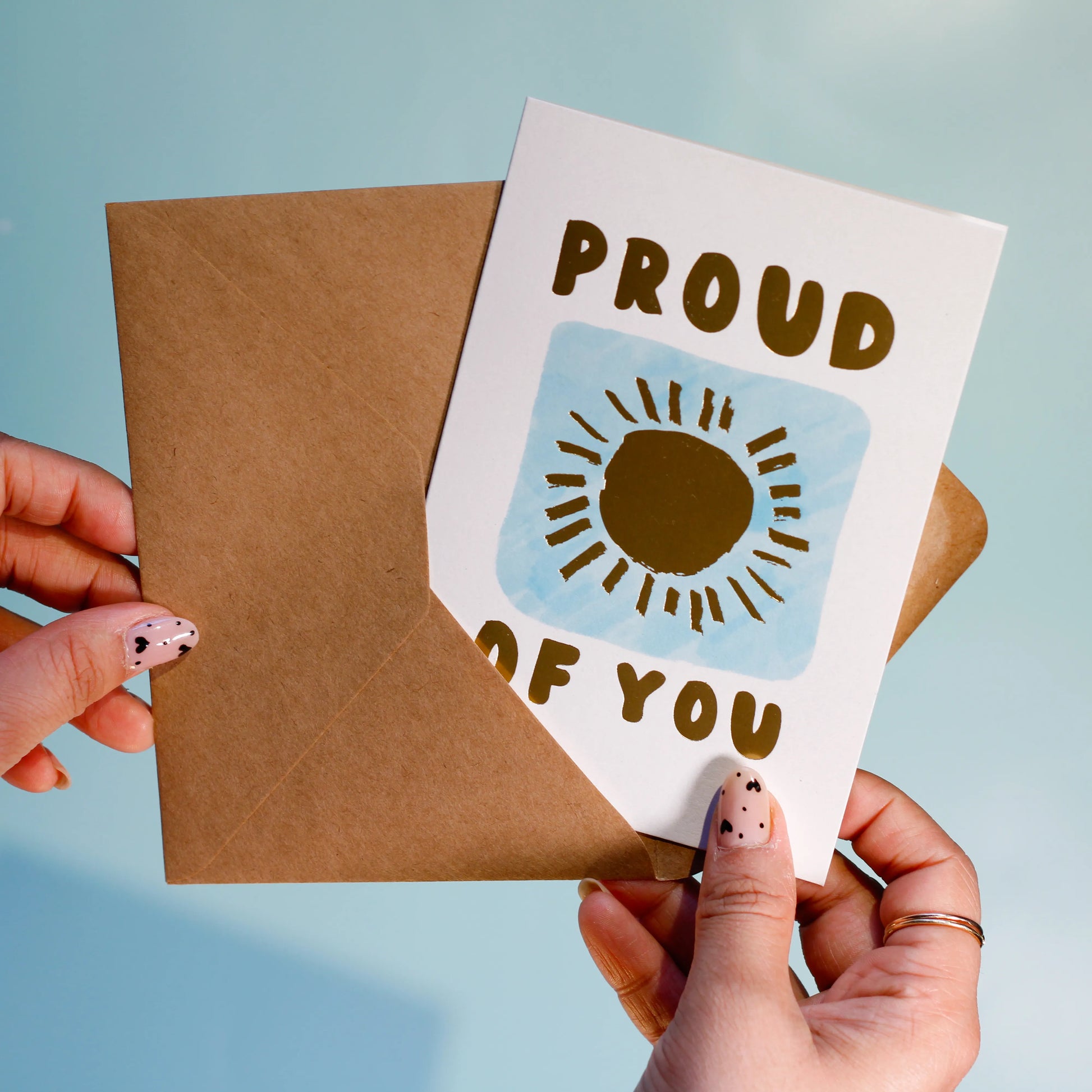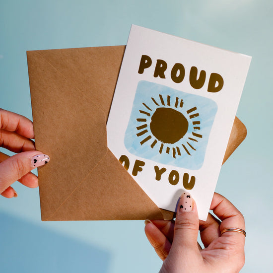 Our 'Proud of You Sunshine' greeting card is bursting with joy and good energy, just like the person you're proud of! Send this sunny little shoutout for any big (or small) win.