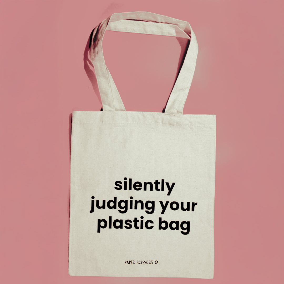 For the days when you're trying to save the planet, but also look like you’re not trying too hard. Our 'Silently Judging Your Plastic Bag' is the perfect mix of utility and attitude. It carries your essentials while making a quiet statement about waste and taste.