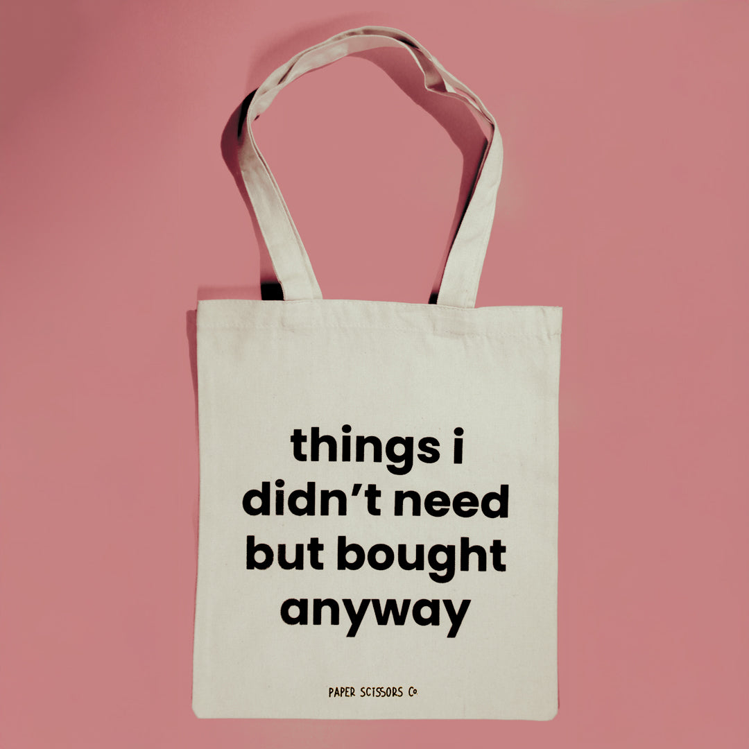 You went out for one thing. You came back with five. And honestly? No regrets. Our 'Things I Didn’t Need But Bought Anyway Tote' is for every impulsive shopper who knows the thrill of a great find and the art of self-justification.