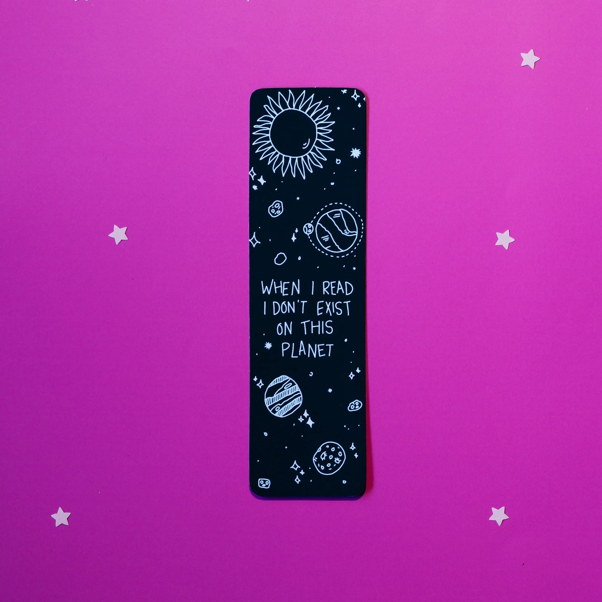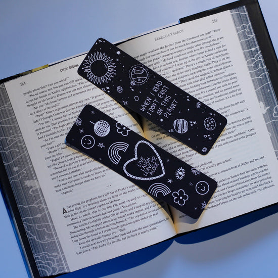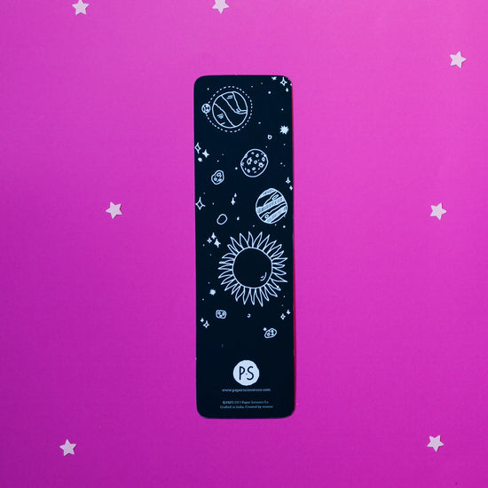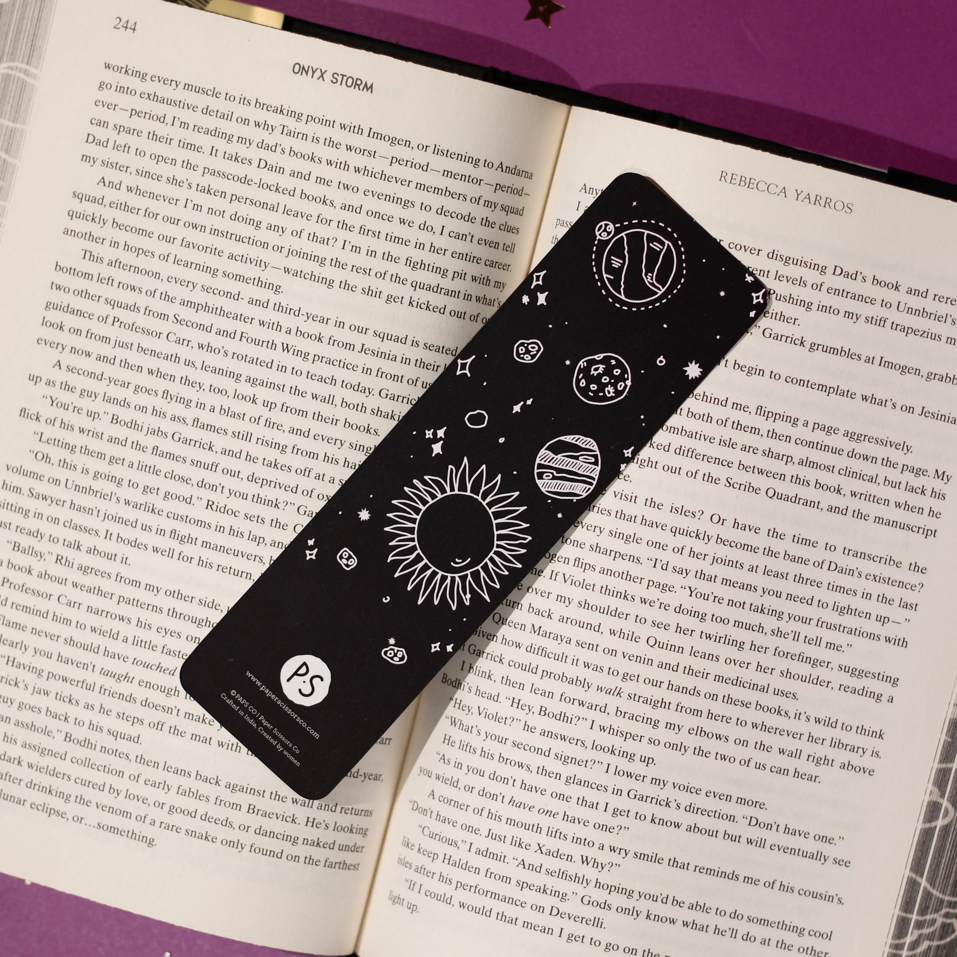 This sleek black bookmark sprinked with adorable space doodles is perfect for anyone who loves getting lost in stories that are truly out of this world.